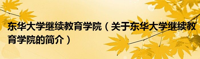 大家好,東華大學繼續教育學院,關于東華大學繼續教育學院的簡介很多人還不知道,現在讓我們一起來看看吧!