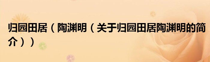 本文關于歸園田居 陶淵明的簡介就講解完畢,希望對大家有所幫助。
