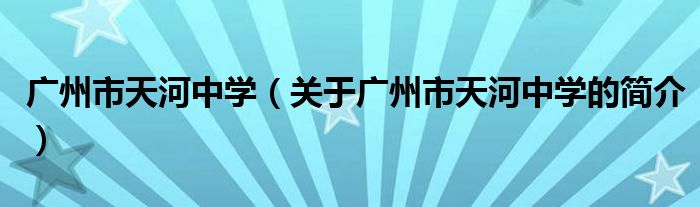 本文關于廣州市天河中學的簡介就講解完畢,希望對大家有所幫助。