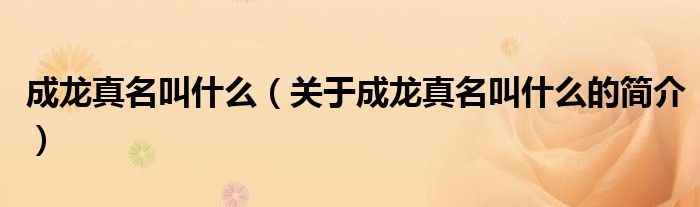 大家好,成龍真名叫什么,關于成龍真名叫什么的簡介很多人還不知道,現(xiàn)在讓我們一起來看看吧!