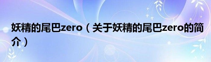 本文關于妖精的尾巴zero的簡介就講解完畢,希望對大家有所幫助。