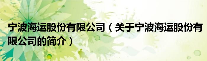 本文關于寧波海運股份有限公司的簡介就講解完畢,希望對大家有所幫助。