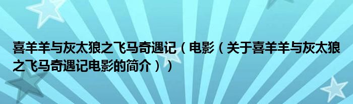 1、《喜羊羊與灰太狼之飛馬奇遇記》是系列動畫電影《喜羊羊與灰太狼》的第六部。