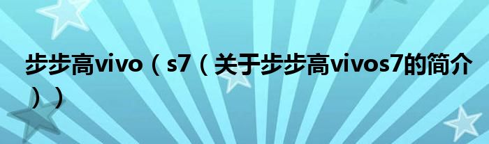 大家好,步步高vivo s7,關于步步高vivo s7的簡介很多人還不知道,現在讓我們一起來看看吧!
