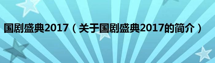 本文關于國劇盛典2017的簡介就講解完畢,希望對大家有所幫助。