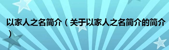 大家好,以家人之名簡介,關于以家人之名簡介的簡介很多人還不知道,現在讓我們一起來看看吧!