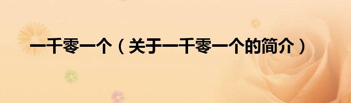 大家好,一千零一個,關于一千零一個的簡介很多人還不知道,現在讓我們一起來看看吧!