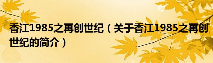 本文關(guān)于香江1985之再創(chuàng)世紀(jì)的簡介就講解完畢,希望對大家有所幫助。