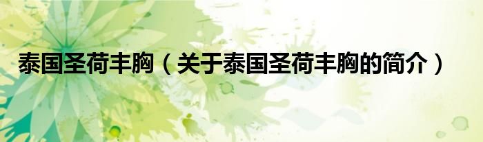 本文關于泰國圣荷豐胸的簡介就講解完畢,希望對大家有所幫助。