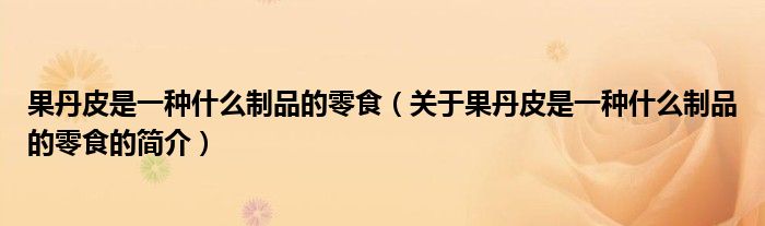 大家好,果丹皮是一種什么制品的零食,關于果丹皮是一種什么制品的零食的簡介很多人還不知道,現在讓我們一起來看看吧!