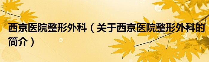 本文關于西京醫院整形外科的簡介就講解完畢,希望對大家有所幫助。