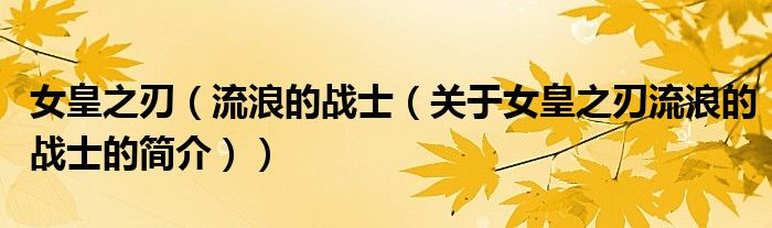 本文關(guān)于女皇之刃 流浪的戰(zhàn)士的簡(jiǎn)介就講解完畢,希望對(duì)大家有所幫助。