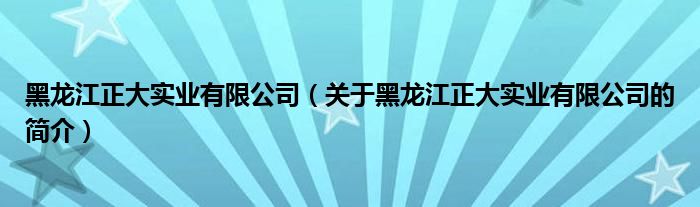 本文關于黑龍江正大實業有限公司的簡介就講解完畢,希望對大家有所幫助。