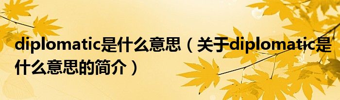 本文關(guān)于diplomatic是什么意思的簡介就講解完畢,希望對大家有所幫助。