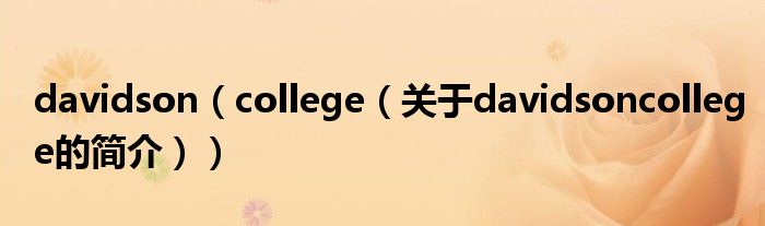 大家好,davidson college,關于davidson college的簡介很多人還不知道,現(xiàn)在讓我們一起來看看吧!