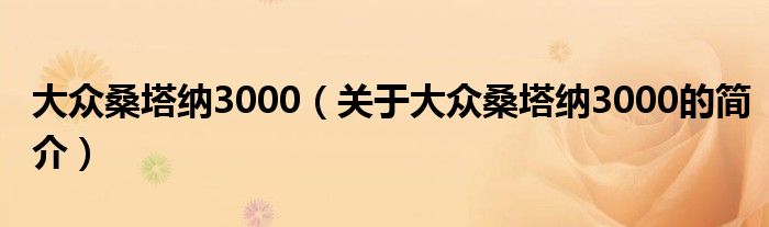大家好,大眾桑塔納3000,關于大眾桑塔納3000的簡介很多人還不知道,現在讓我們一起來看看吧!