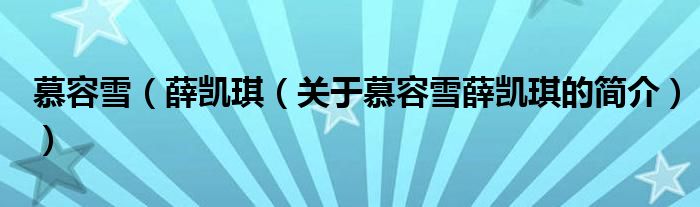 大家好,慕容雪 薛凱琪,關于慕容雪 薛凱琪的簡介很多人還不知道,現在讓我們一起來看看吧!