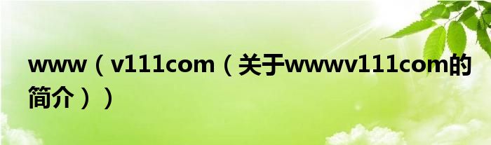 本文關(guān)于www v111 com的簡(jiǎn)介就講解完畢,希望對(duì)大家有所幫助。
