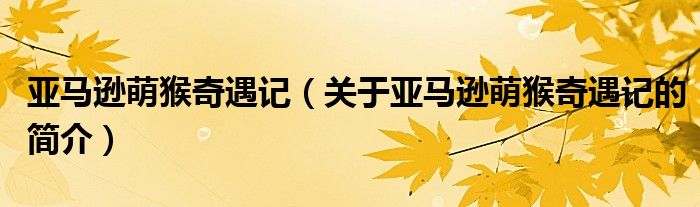 大家好,亞馬遜萌猴奇遇記,關(guān)于亞馬遜萌猴奇遇記的簡介很多人還不知道,現(xiàn)在讓我們一起來看看吧!