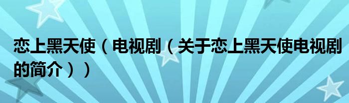 本文關于戀上黑天使 電視劇的簡介就講解完畢,希望對大家有所幫助。