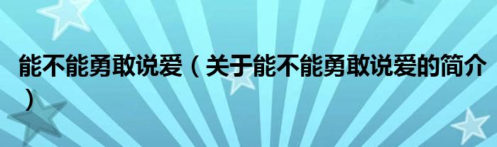 大家好,能不能勇敢說愛,關于能不能勇敢說愛的簡介很多人還不知道,現在讓我們一起來看看吧!
