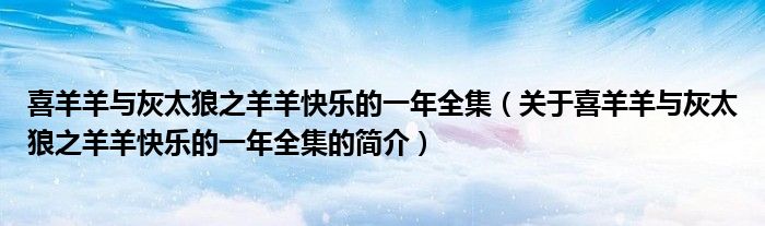 本文關(guān)于喜羊羊與灰太狼之羊羊快樂的一年全集的簡介就講解完畢,希望對大家有所幫助。