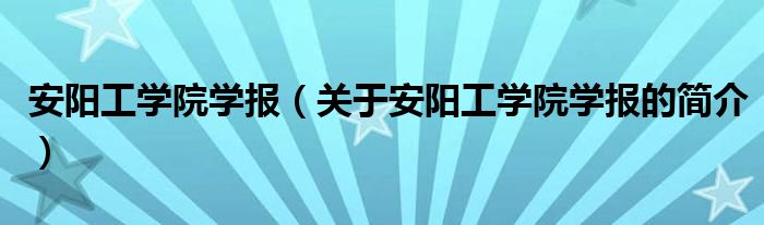 大家好,安陽工學院學報,關于安陽工學院學報的簡介很多人還不知道,現在讓我們一起來看看吧!