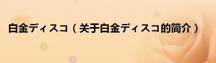 大家好,白金ディスコ,關(guān)于白金ディスコ的簡(jiǎn)介很多人還不知道,現(xiàn)在讓我們一起來(lái)看看吧!