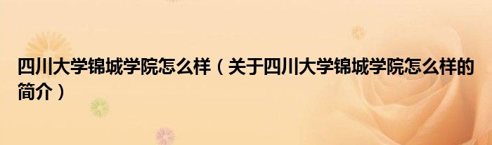 大家好,四川大學錦城學院怎么樣,關于四川大學錦城學院怎么樣的簡介很多人還不知道,現在讓我們一起來看看吧!