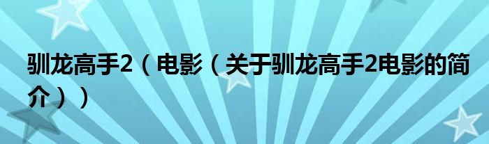 本文關于馴龍高手2 電影的簡介就講解完畢,希望對大家有所幫助。