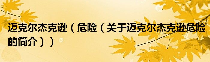 本文關于邁克爾杰克遜 危險的簡介就講解完畢,希望對大家有所幫助。