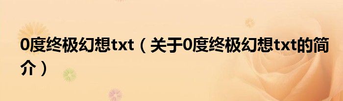 本文關(guān)于0度終極幻想txt的簡介就講解完畢,希望對大家有所幫助。