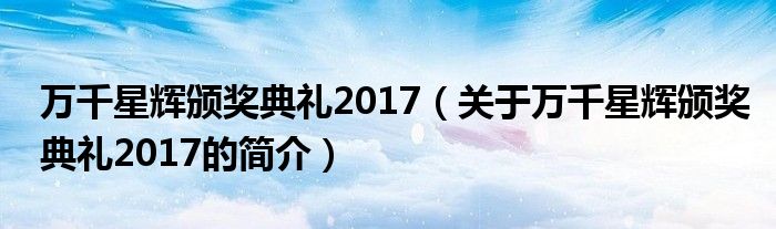 本文關于萬千星輝頒獎典禮2017的簡介就講解完畢,希望對大家有所幫助。