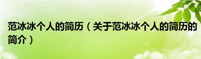 本文關于范冰冰個人的簡歷的簡介就講解完畢,希望對大家有所幫助。