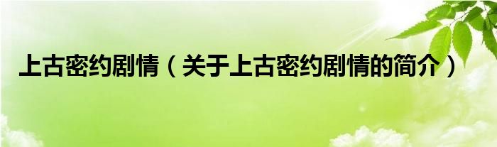 本文關于上古密約劇情的簡介就講解完畢,希望對大家有所幫助。