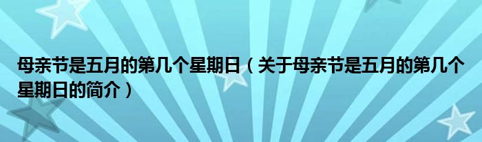本文關(guān)于母親節(jié)是五月的第幾個星期日的簡介就講解完畢,希望對大家有所幫助。