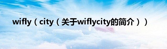 大家好,wifly city,關(guān)于wifly city的簡介很多人還不知道,現(xiàn)在讓我們一起來看看吧!