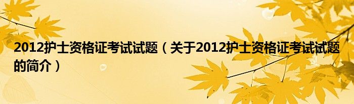本文關(guān)于2012護士資格證考試試題的簡介就講解完畢,希望對大家有所幫助。