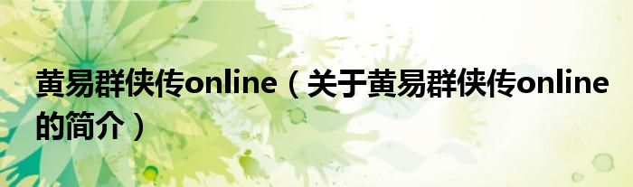 大家好,黃易群俠傳online,關于黃易群俠傳online的簡介很多人還不知道,現在讓我們一起來看看吧!