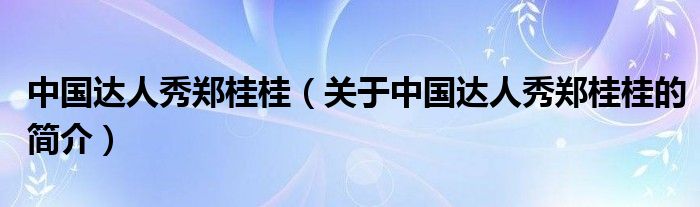 大家好,中國達人秀鄭桂桂,關于中國達人秀鄭桂桂的簡介很多人還不知道,現在讓我們一起來看看吧!