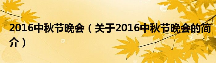 本文關于2016中秋節晚會的簡介就講解完畢,希望對大家有所幫助。