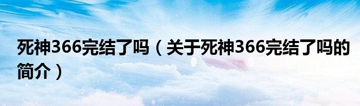 本文關于死神366完結了嗎的簡介就講解完畢,希望對大家有所幫助。