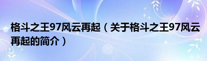 本文關于格斗之王97風云再起的簡介就講解完畢,希望對大家有所幫助。