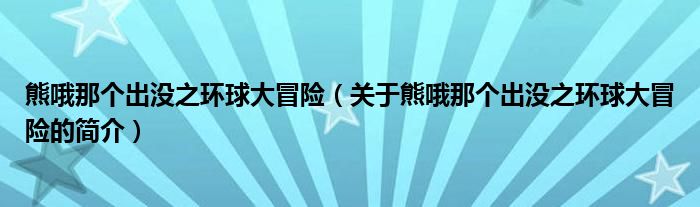 大家好,熊哦那個出沒之環球大冒險,關于熊哦那個出沒之環球大冒險的簡介很多人還不知道,現在讓我們一起來看看吧!