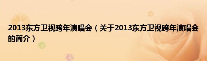 本文關(guān)于2013東方衛(wèi)視跨年演唱會(huì)的簡(jiǎn)介就講解完畢,希望對(duì)大家有所幫助。