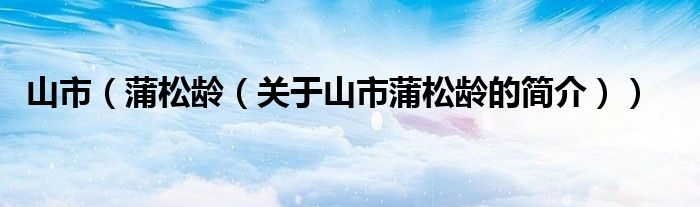本文關于山市 蒲松齡的簡介就講解完畢,希望對大家有所幫助。