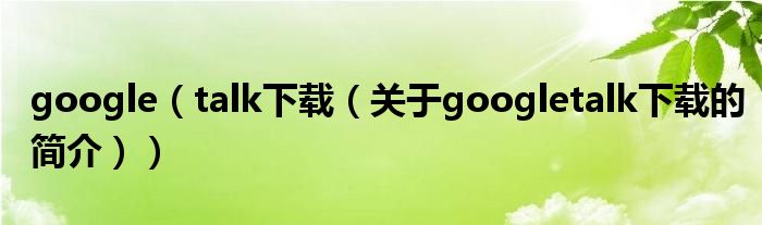 本文關于google talk下載的簡介就講解完畢,希望對大家有所幫助。