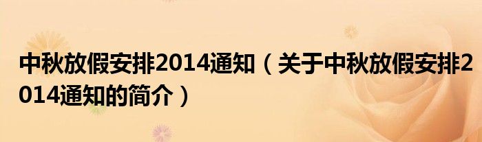 本文關(guān)于中秋放假安排2014通知的簡(jiǎn)介就講解完畢,希望對(duì)大家有所幫助。