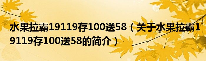本文關于水果拉霸19119存100送58的簡介就講解完畢,希望對大家有所幫助。