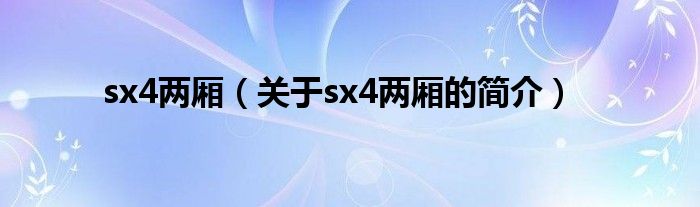 大家好,sx4兩廂,關(guān)于sx4兩廂的簡介很多人還不知道,現(xiàn)在讓我們一起來看看吧!